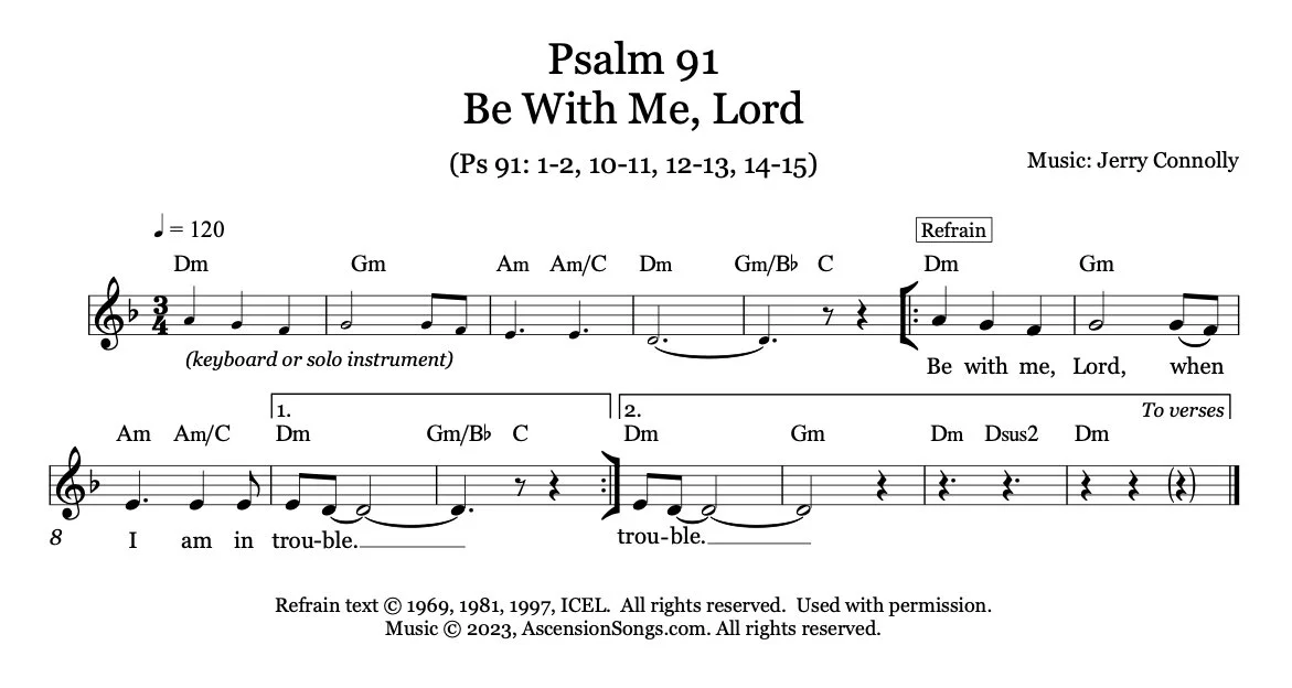 March 5, 2025 Ash Wednesday (ABC) View Complete Psalm March 9, 2025 1st Sunday Lent (Year C) View Complete Psalm March 16, 2025 2nd Sunday Lent (Year C) View Complete Psalm March 23, 2025 3rd Sunday Lent (Year C) View Complete Psalm March 30, 2025 4th Sunday Lent (Year C) View Complete Psalm April 6, 2025 5th Sunday Lent (Year C) View Complete Psalm